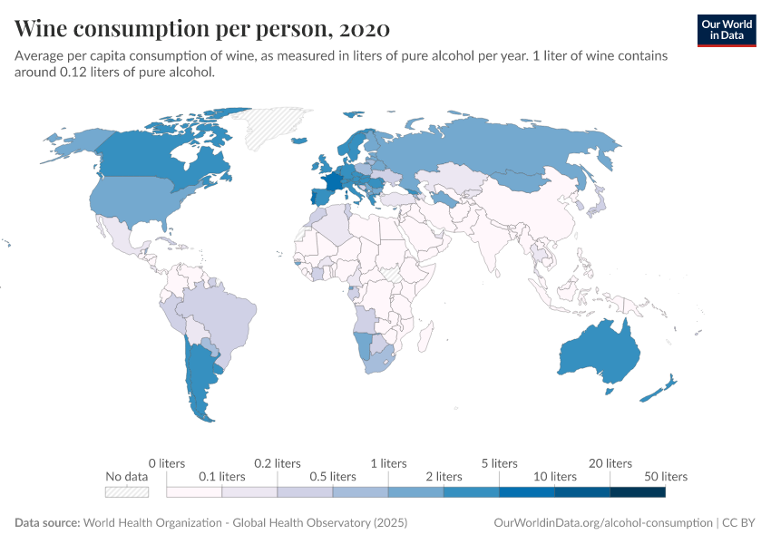 Hannah Ritchie and Max Roser (2022) - “Alcohol Consumption” Published online at OurWorldinData.org. Retrieved from: 'https://country-profiles.owid.pages.dev/alcohol-consumption' [Online Resource]BibTeX citation