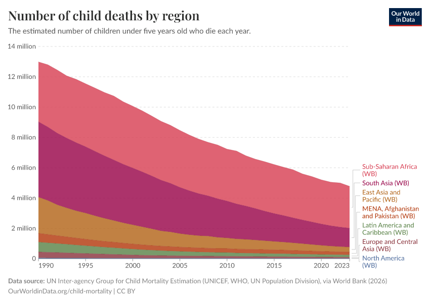 On this page, you will find data and research on child mortality across the world, how it has changed, its causes, and what we can do about it.