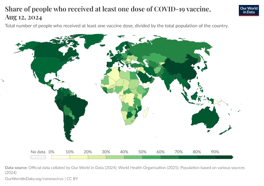 Edouard Mathieu, Hannah Ritchie, Lucas Rodés-Guirao, Cameron Appel, Daniel Gavrilov, Charlie Giattino, Joe Hasell, Bobbie Macdonald, Saloni Dattani, Diana Beltekian, Esteban Ortiz-Ospina, and Max Roser (2020) - “Coronavirus (COVID-19) Vaccinations” Published online at OurWorldinData.org. Retrieved from: 'https://country-profiles.owid.pages.dev/covid-vaccinations' [Online Resource]BibTeX citation