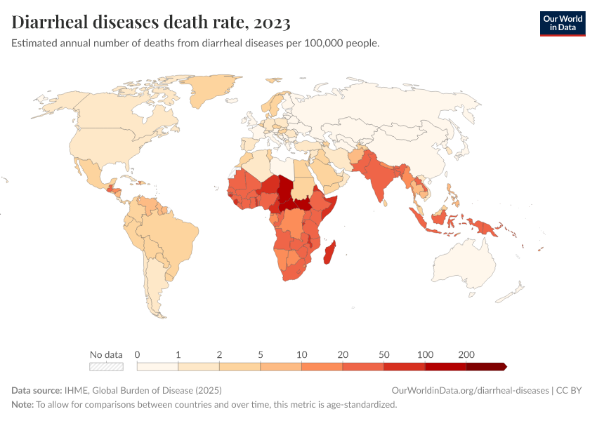 Saloni Dattani, Fiona Spooner, Hannah Ritchie, and Max Roser (2023) - “Diarrheal Diseases” Published online at OurWorldinData.org. Retrieved from: 'https://country-profiles.owid.pages.dev/diarrheal-diseases' [Online Resource]BibTeX citation