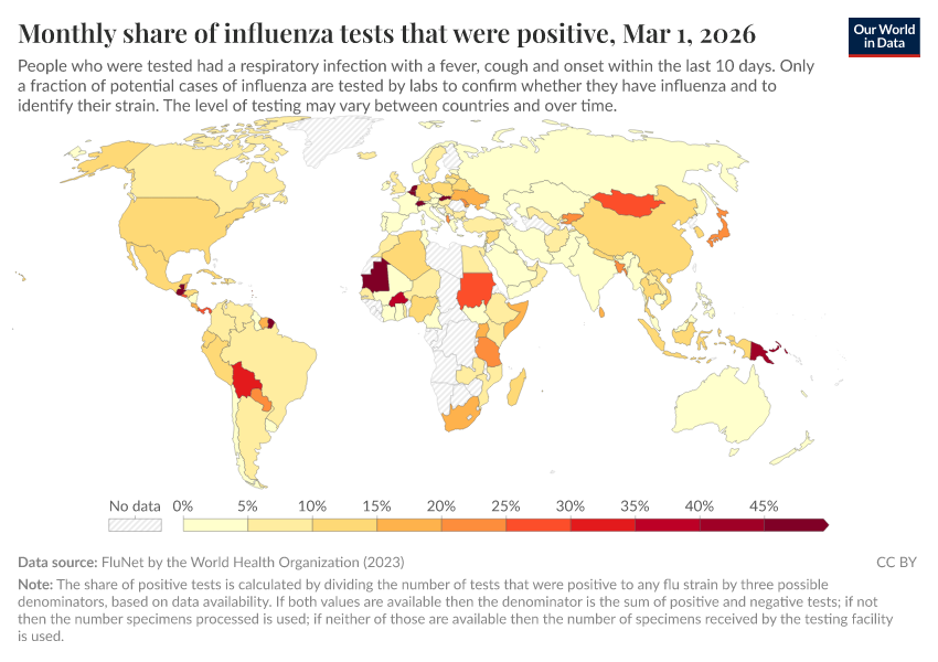 Explore global data produced by the World Health Organization on influenza symptoms and cases.