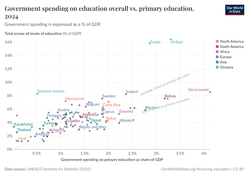 Max Roser and Esteban Ortiz-Ospina (2016) - “Education Spending” Published online at OurWorldinData.org. Retrieved from: 'https://country-profiles.owid.pages.dev/financing-education' [Online Resource]BibTeX citation
