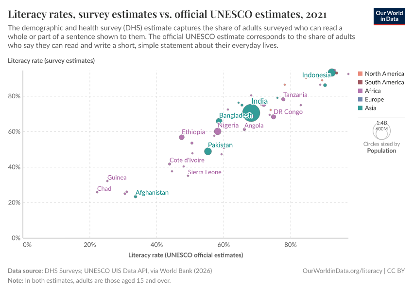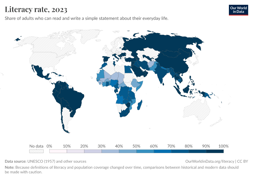 Max Roser and Esteban Ortiz-Ospina (2018) - “Literacy” Published online at OurWorldinData.org. Retrieved from: 'https://country-profiles.owid.pages.dev/literacy' [Online Resource]BibTeX citation