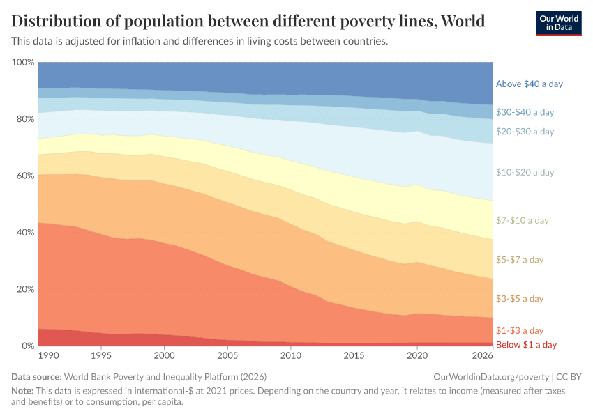 Joe Hasell, Bertha Rohenkohl, and Pablo Arriagada (2025) - “$3 a day: A new poverty line has shifted the World Bank’s data on extreme poverty. What changed, and why?” Published online at OurWorldinData.org. Retrieved from: 'https://country-profiles.owid.pages.dev/new-international-poverty-line-3-dollars-per-day' [Online Resource]BibTeX citation
