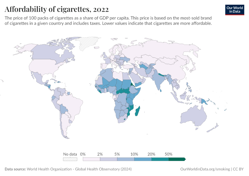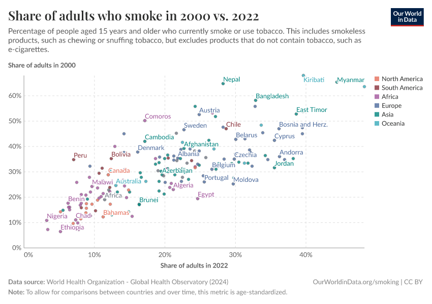 Hannah Ritchie and Max Roser (2023) - “Smoking” Published online at OurWorldinData.org. Retrieved from: 'https://country-profiles.owid.pages.dev/smoking' [Online Resource]BibTeX citation